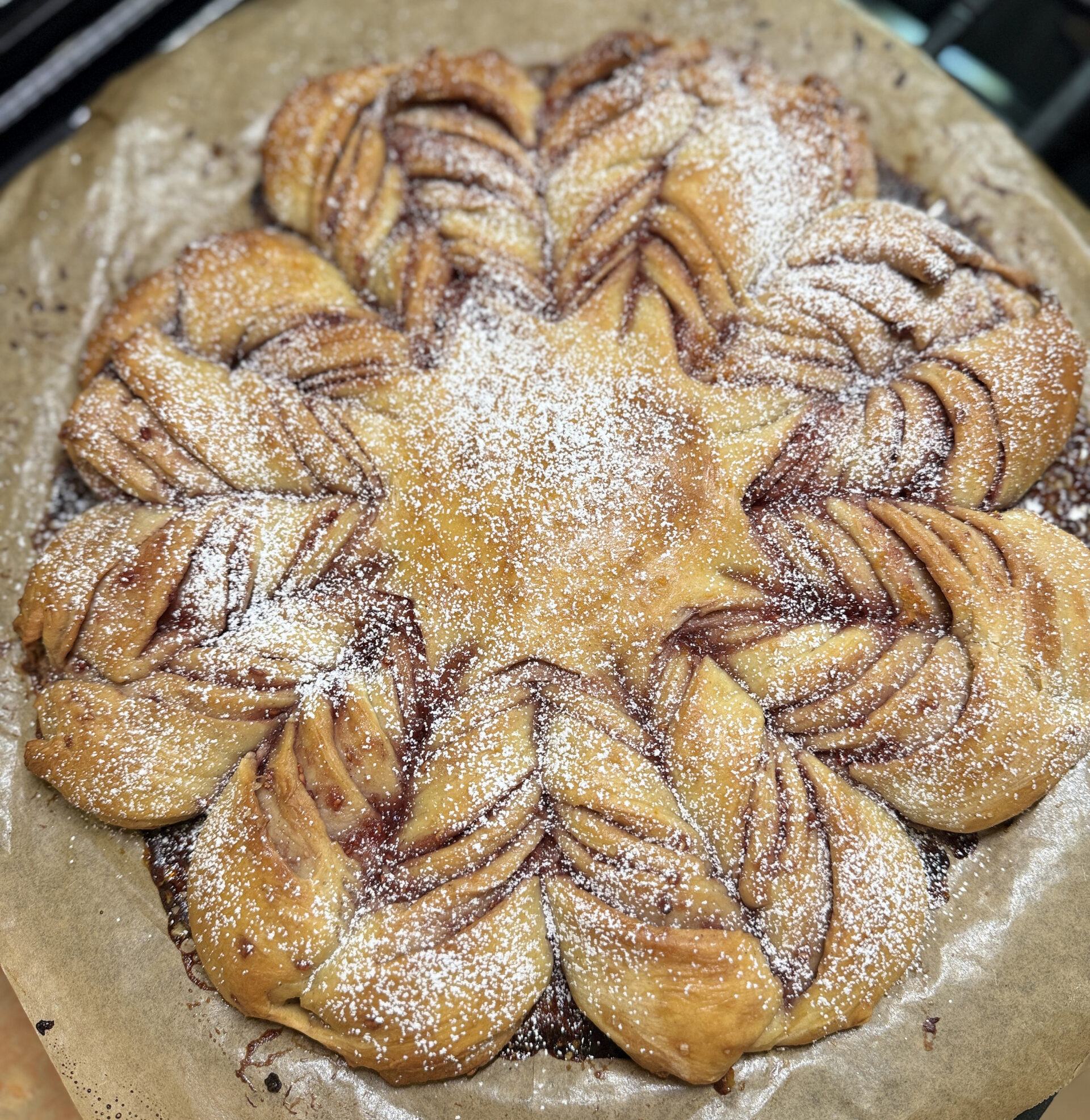 - The shape — a snowflake-style wreath — makes it special for the holidays. When you twist the dough layers, the final wreath feels festive and looks impressive, even if you’re not a pro baker. Simply cut and twist each “branch” twice and then pinch at together.